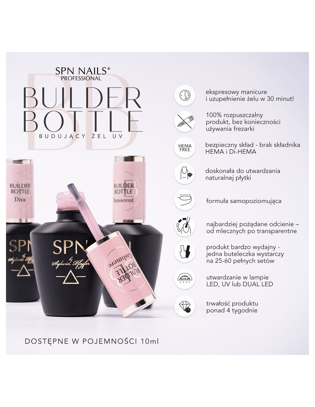 • You will save time and product - one Builder Bottle is enough for 25-60 full manicure sets