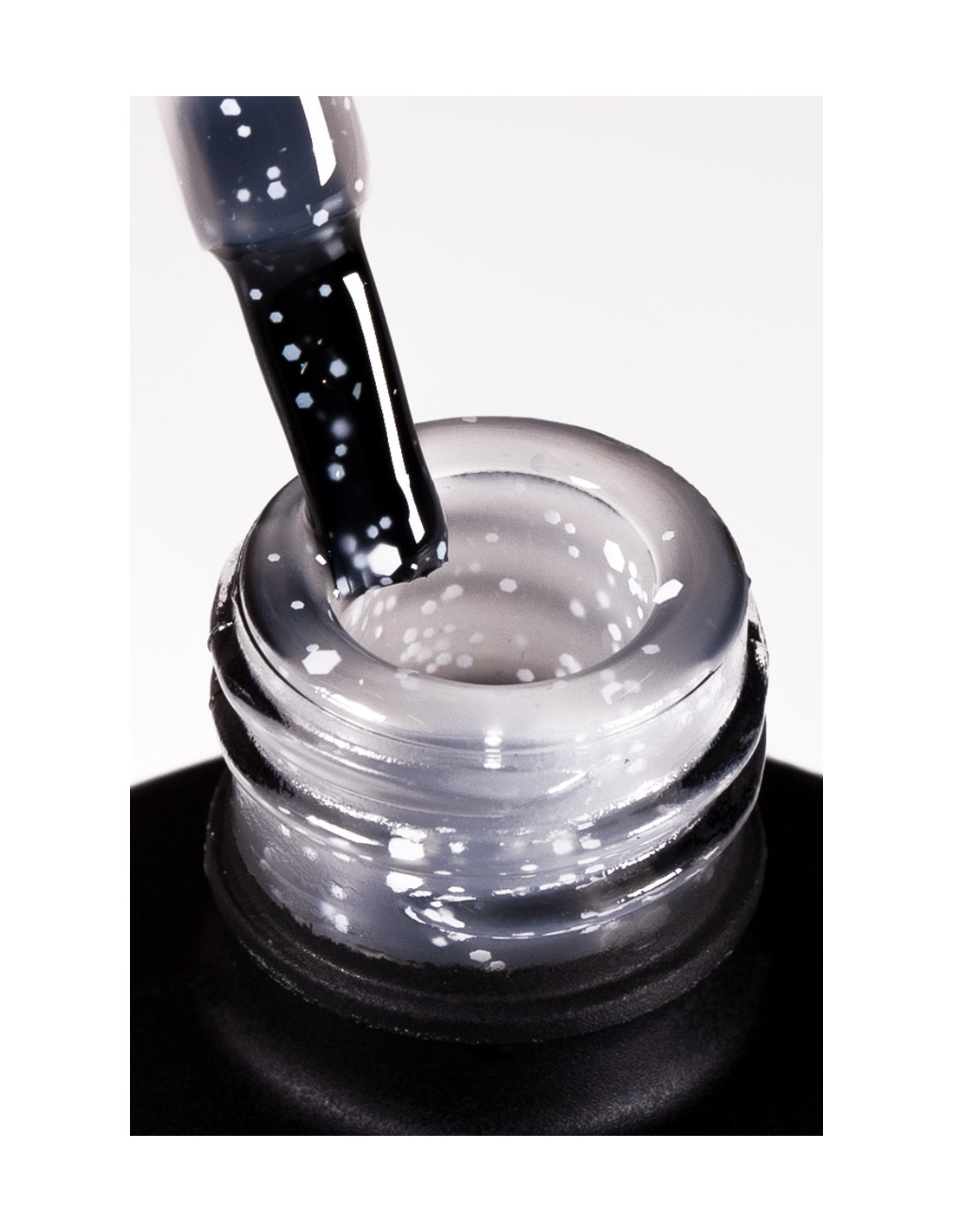 944 White Spots is a matte, transparent gel polish with thousands of delicate white dots. It will contrast well with dark gel polishes and diversify any manicure.