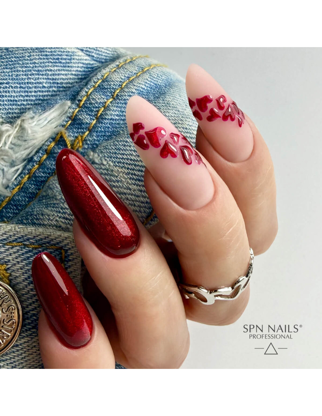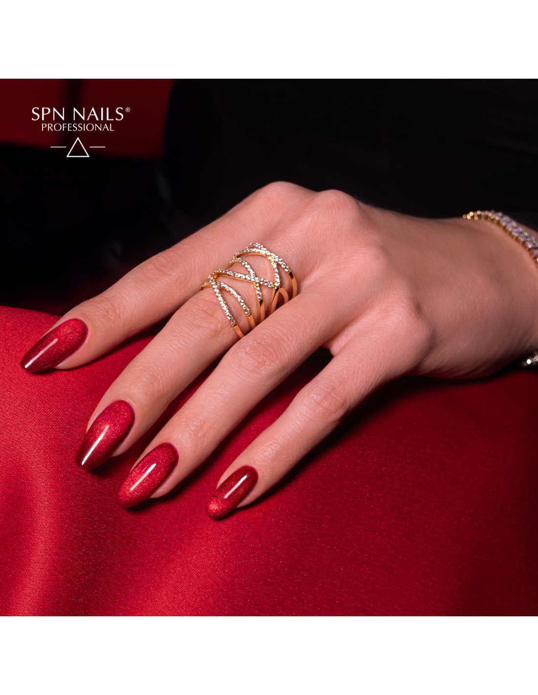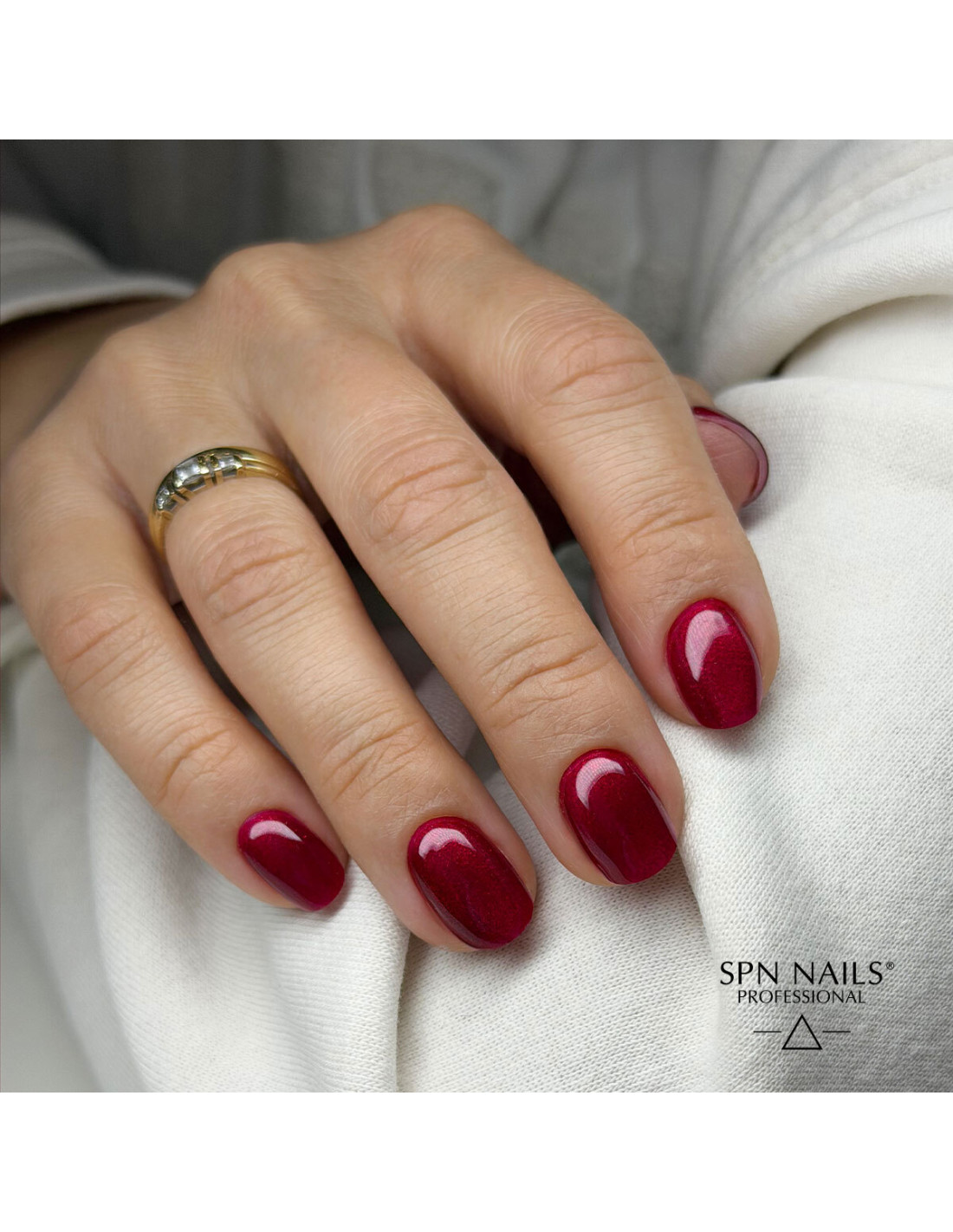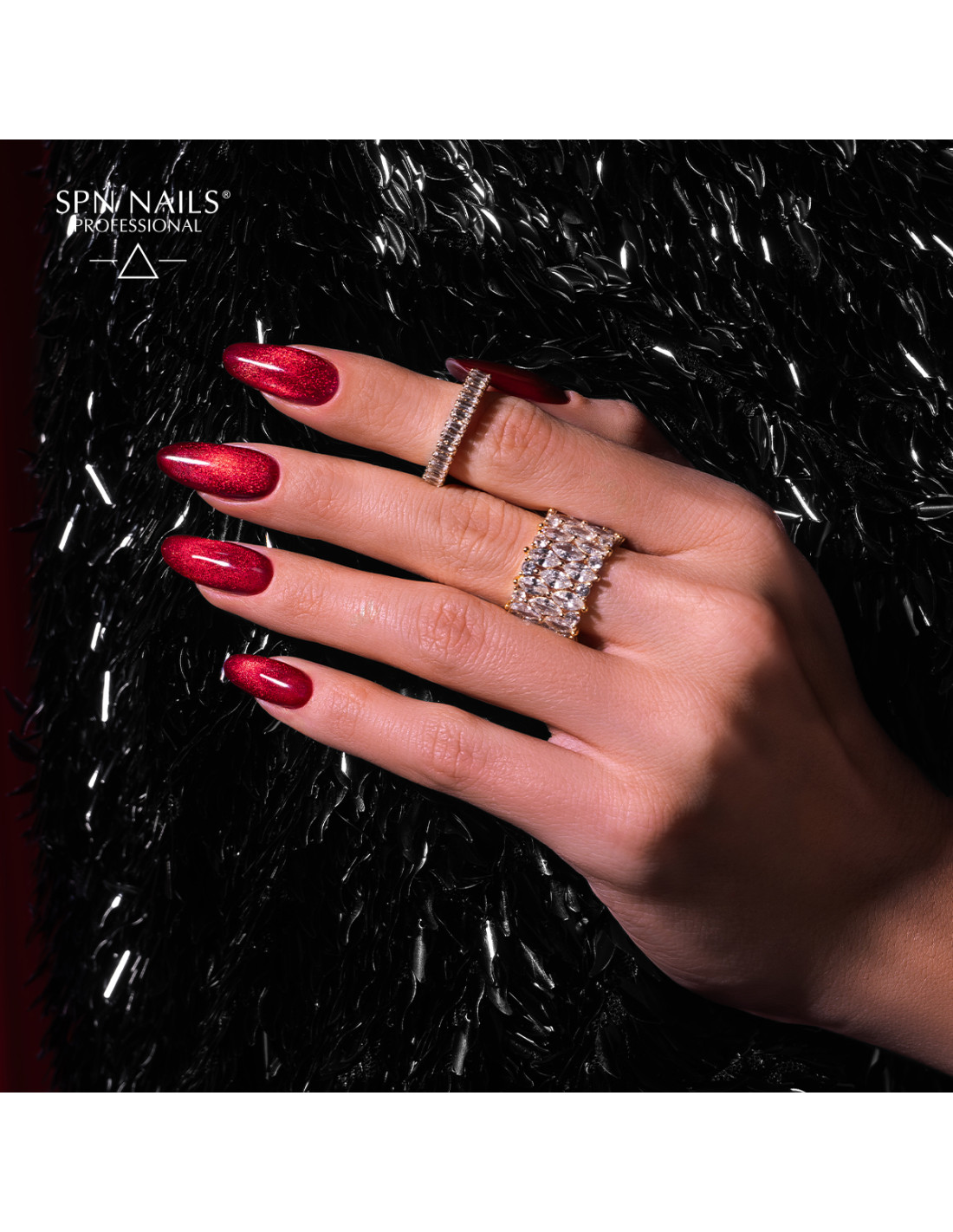 1033CE Obsession hybrid nail polish is a mesmerizing, deep red with a magnetic cat eye effect that dances with light with every movement of the hand. This shade combines elegance, mystery, and passion. This intense, vibrant red, illuminated by thousands of shimmering particles, creates an effect on the nails that attracts, intrigues, and stays in the memory for a long time.