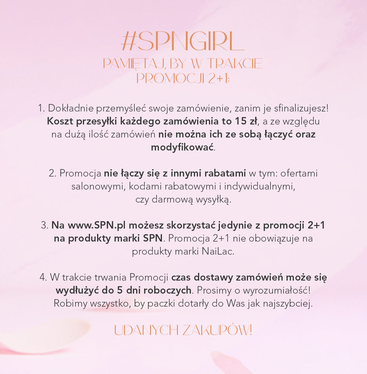 W dn. 06-08.03.2025 (lub do wyczerpania zapasów) na stronie www.spn.pl czeka na Ciebie moc superokazji! Setki produktów w Promocji 2+1, czyli przy wyborze 3 produktów z tej samej kategorii, o tej samej pojemności, jeden produkt otrzymasz od nas w prezencie (za 1 zł)!