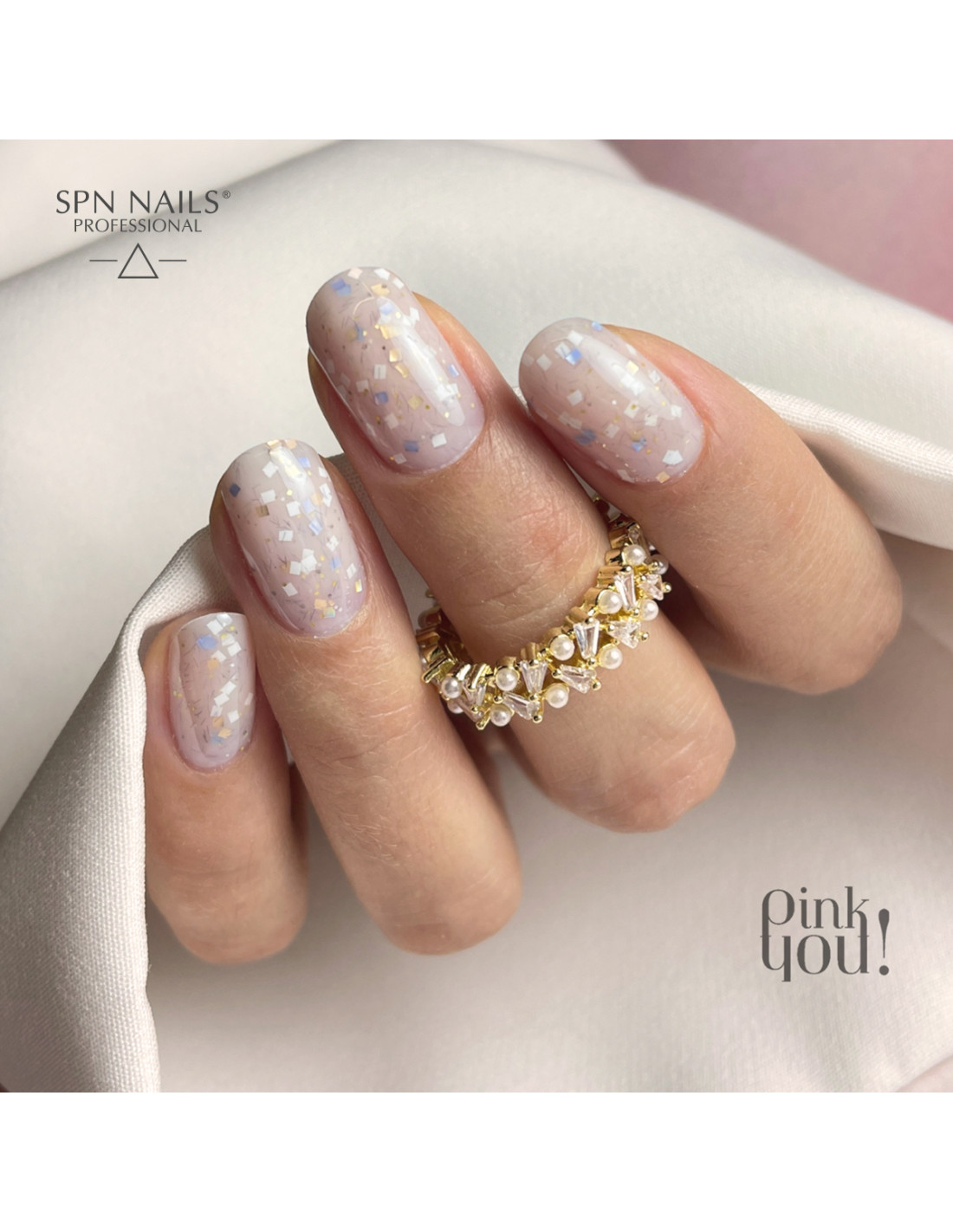 Funny Base - Funny #3 to rozbielony błękit z domieszką białych i złotych geometrycznych drobinek, przeplatanych niebieskimi włóknami.
