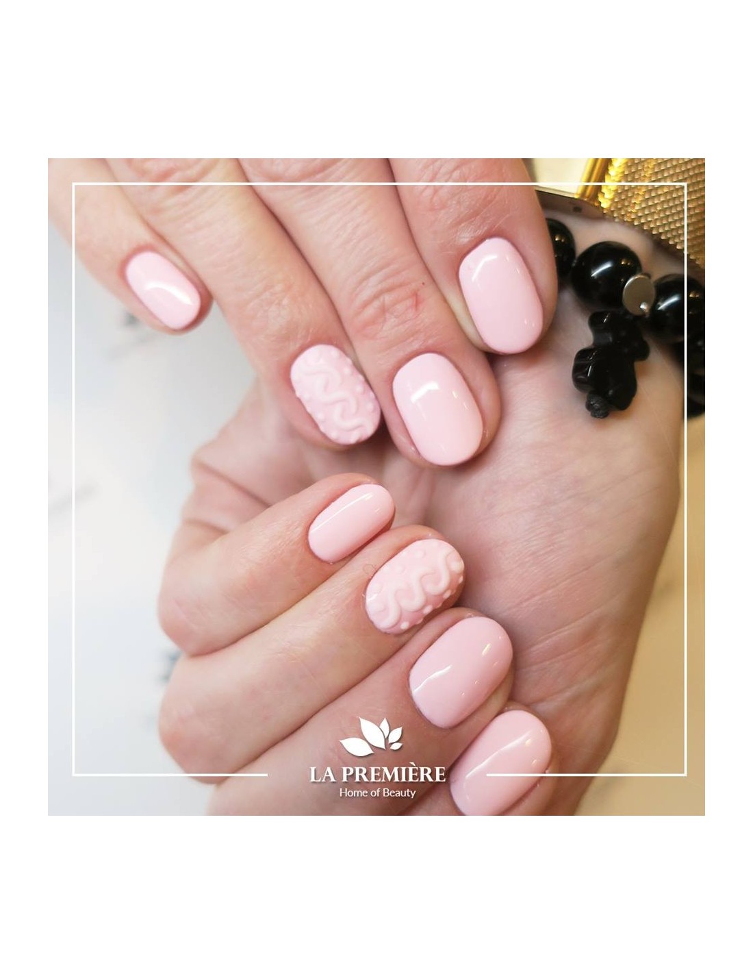 Słodki, rozbielony róż przywołujący na myśl słodycz waty cukrowej. Pięknie prezentuje się na każdej długości paznokcia, nabiera dodatkowego szyku przy w towarzystwie delikatnych zdobień z cyrkonii.
