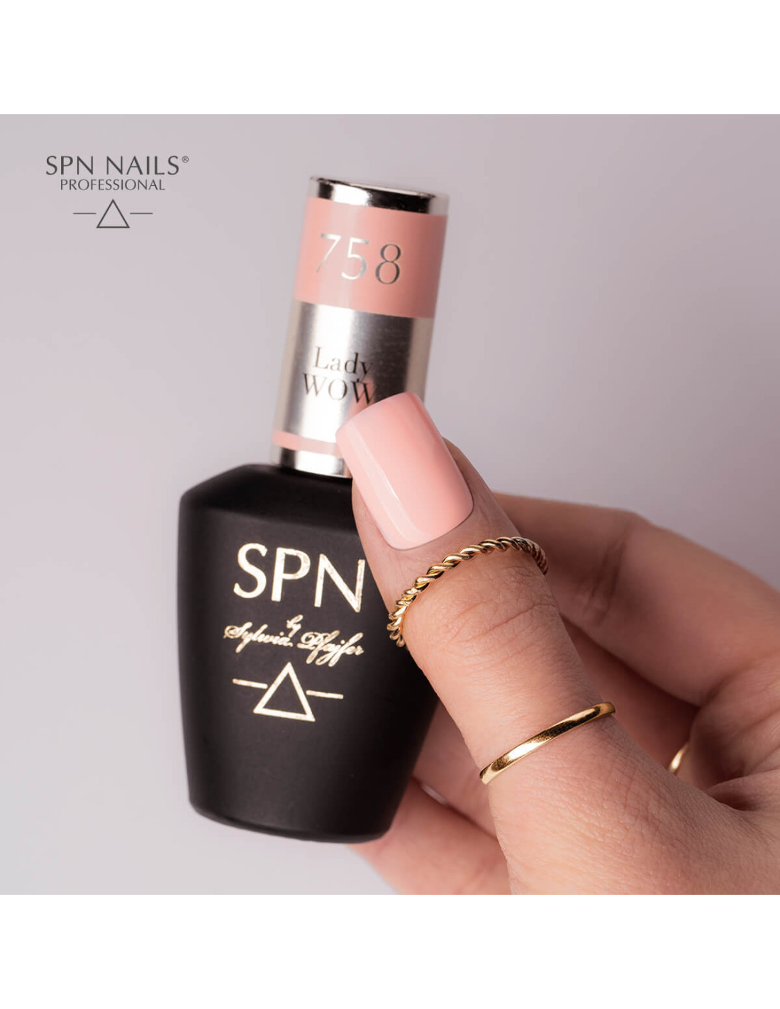 Jasnoróżowy, pastelowy lakier hybrydowy 758 Lady WOW SPN Nails