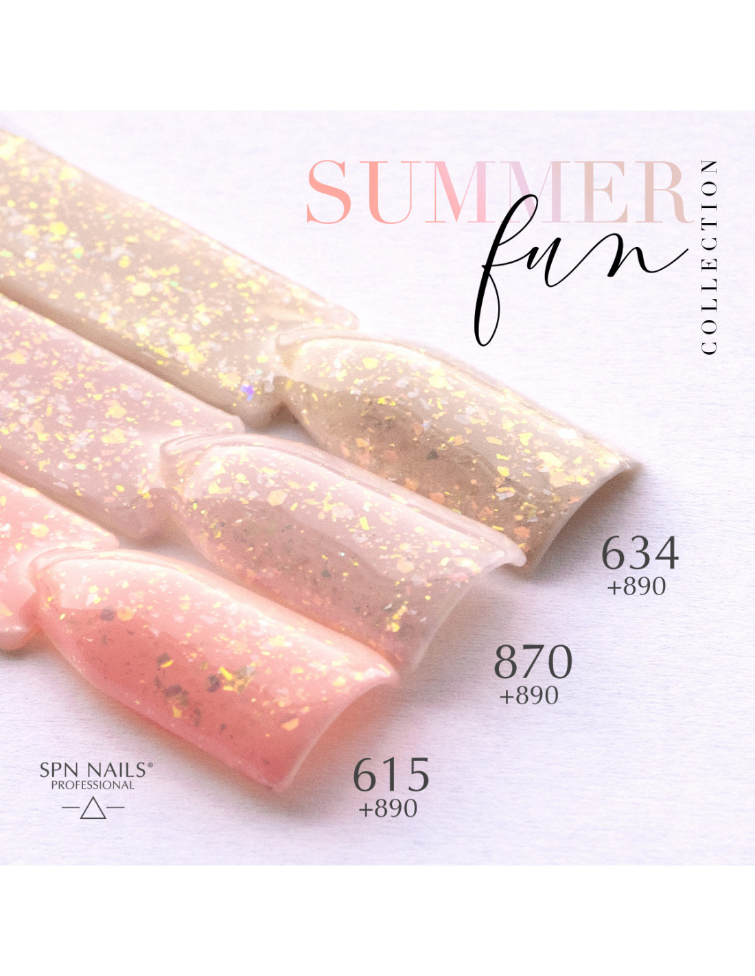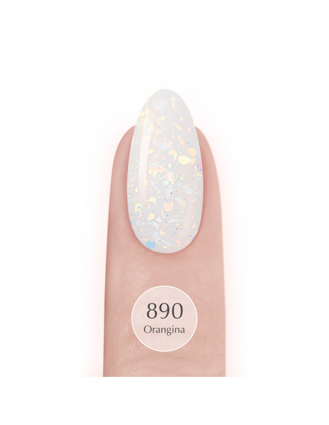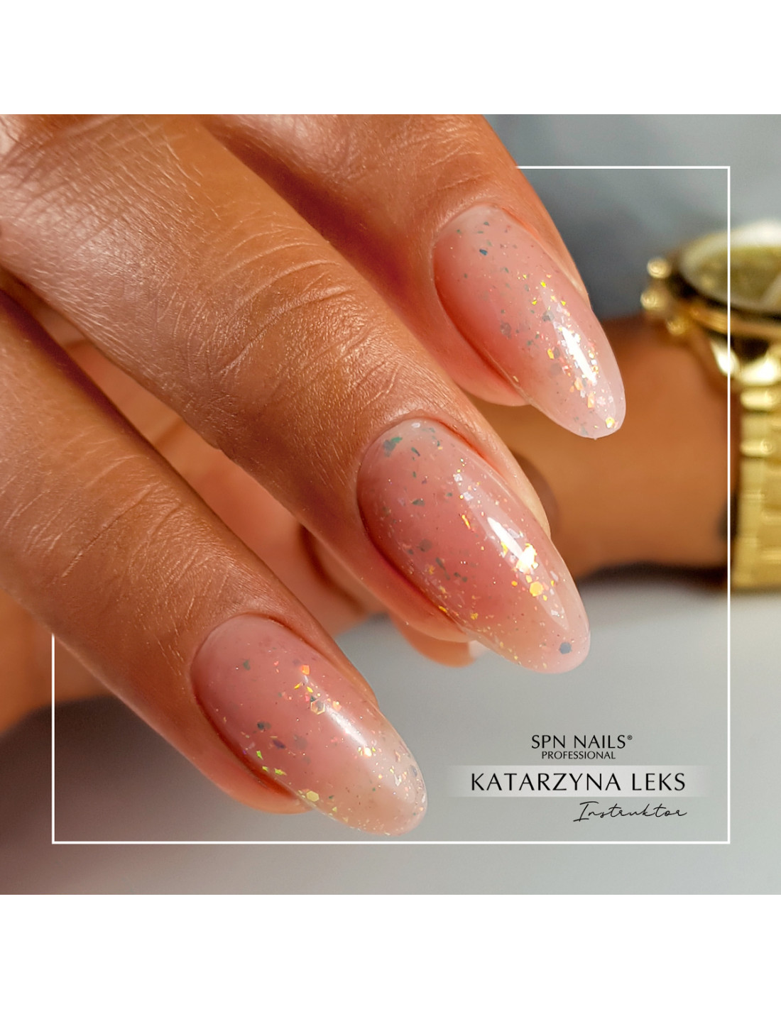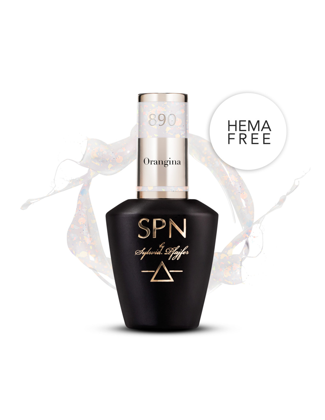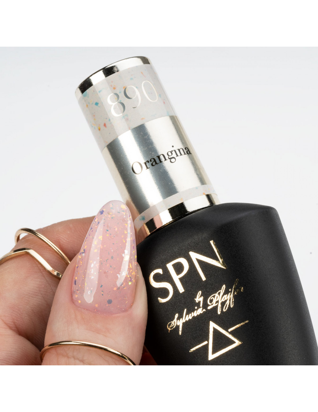 Przezroczysty lakier hybrydowy z opalizującymi drobinkami 890 Orangina z kolekcji Summer Fun SPN Nails
