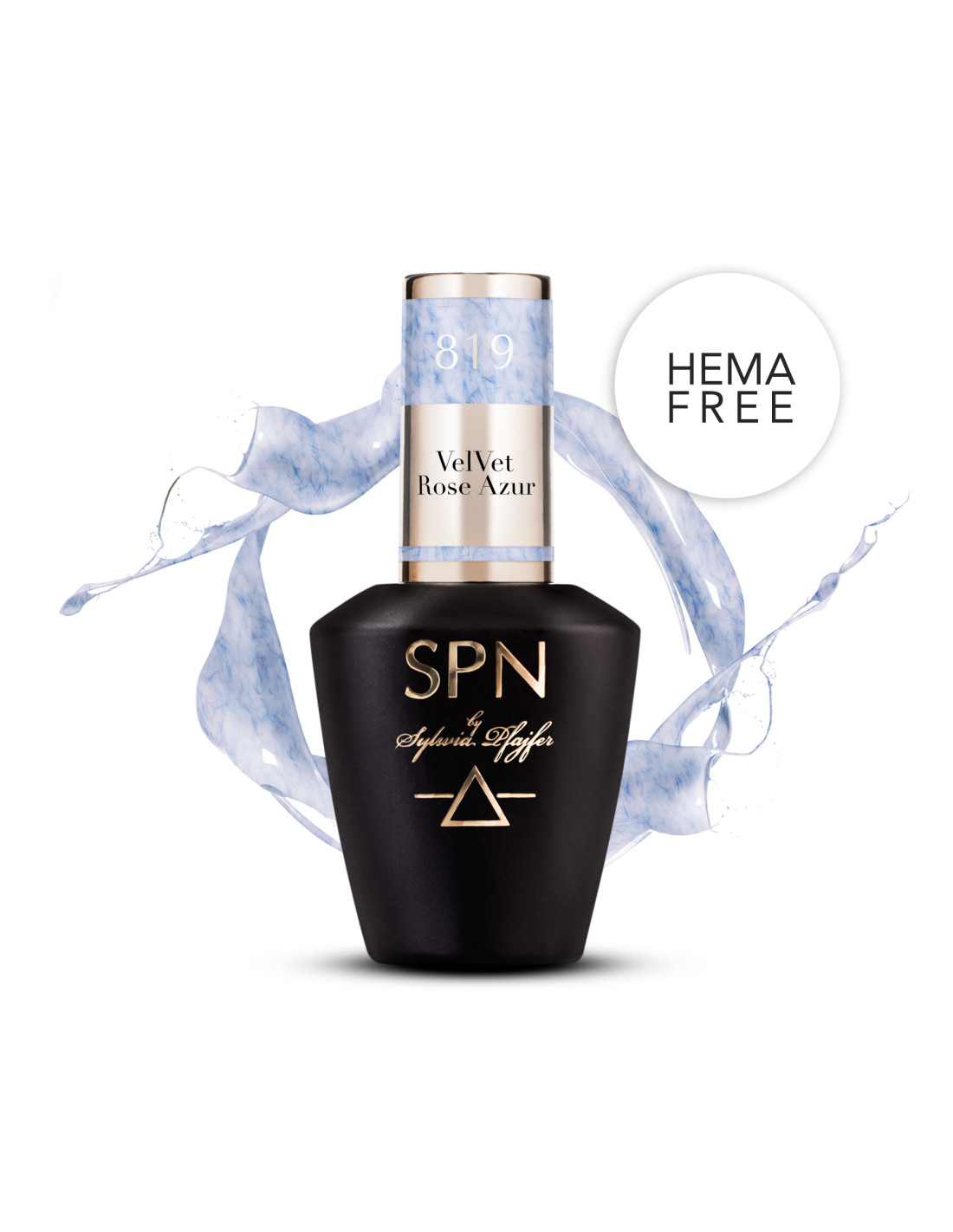 Marmurkowy, niebieski lakier hybrydowy 819 VelVet Rose Azur SPN Nails