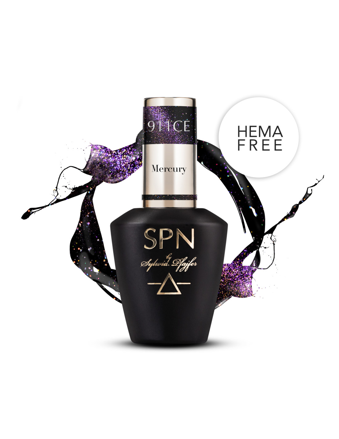 911CE Mercury to lakier hybrydowy z efektem kociego oka, który daje kosmiczną poświatę z połączenia kolorów: fioletowego i żółtego.