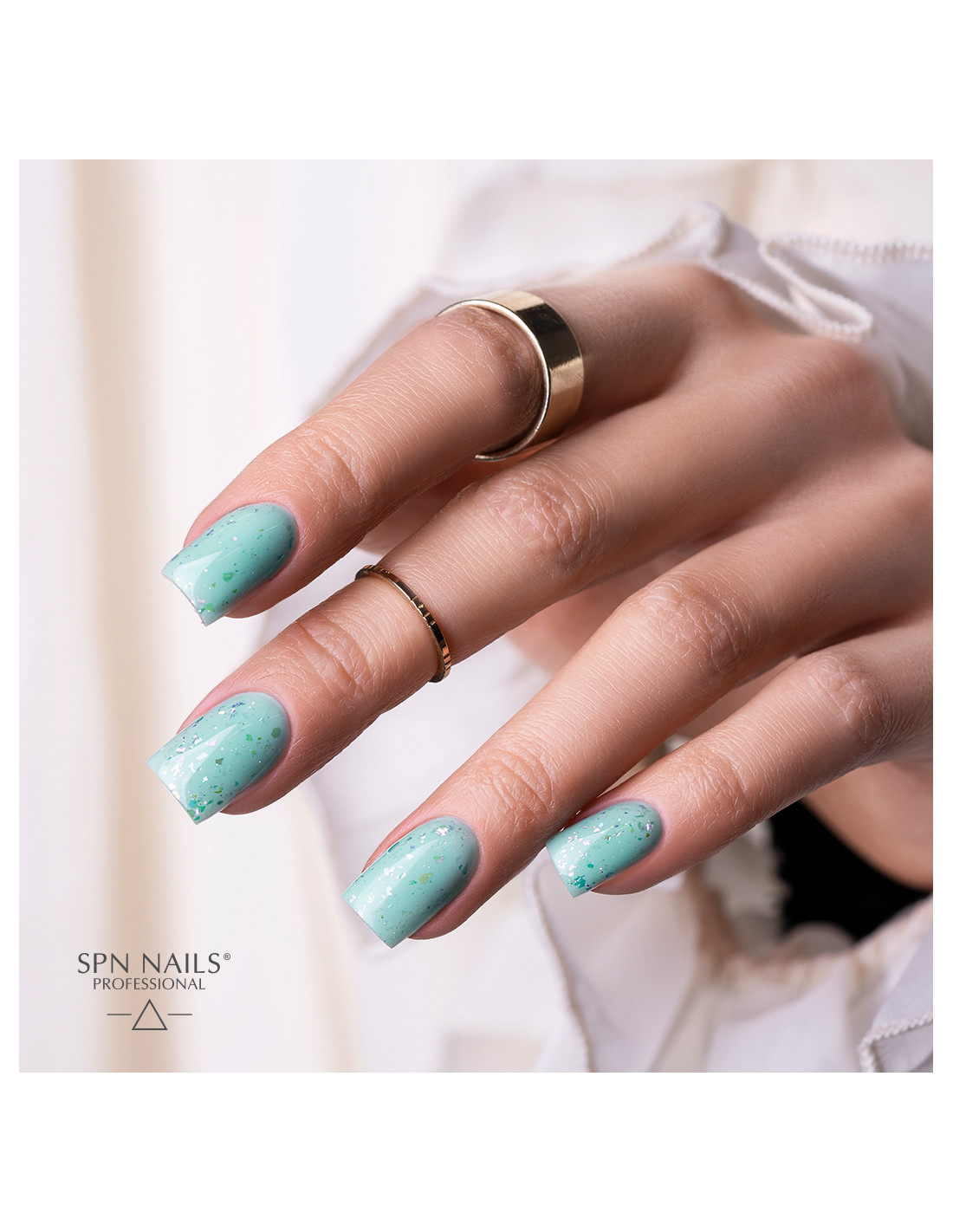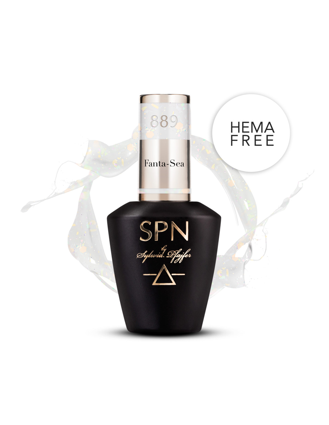 Przezroczysty lakier hybrydowy z opalizującymi drobinkami 889 Fanta-Sea z kolekcji Summer Fun SPN Nails