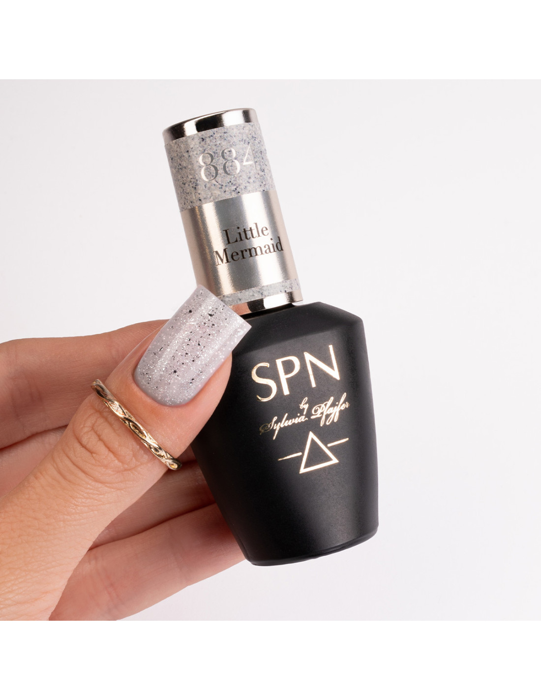 Srebrny holograficzny lakier hybrydowy 884 Little Mermaid z kolekcji Galaxy Glam SPN Nails