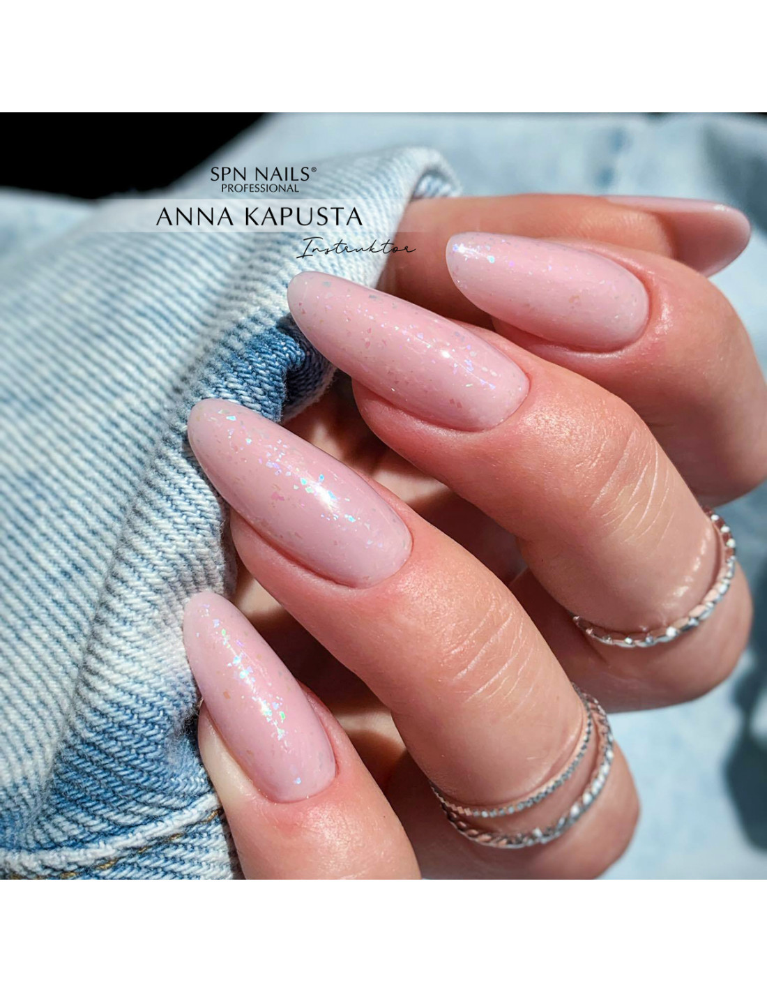 Mleczny lakier hybrydowy z opalizującymi drobinkami 958 Bella