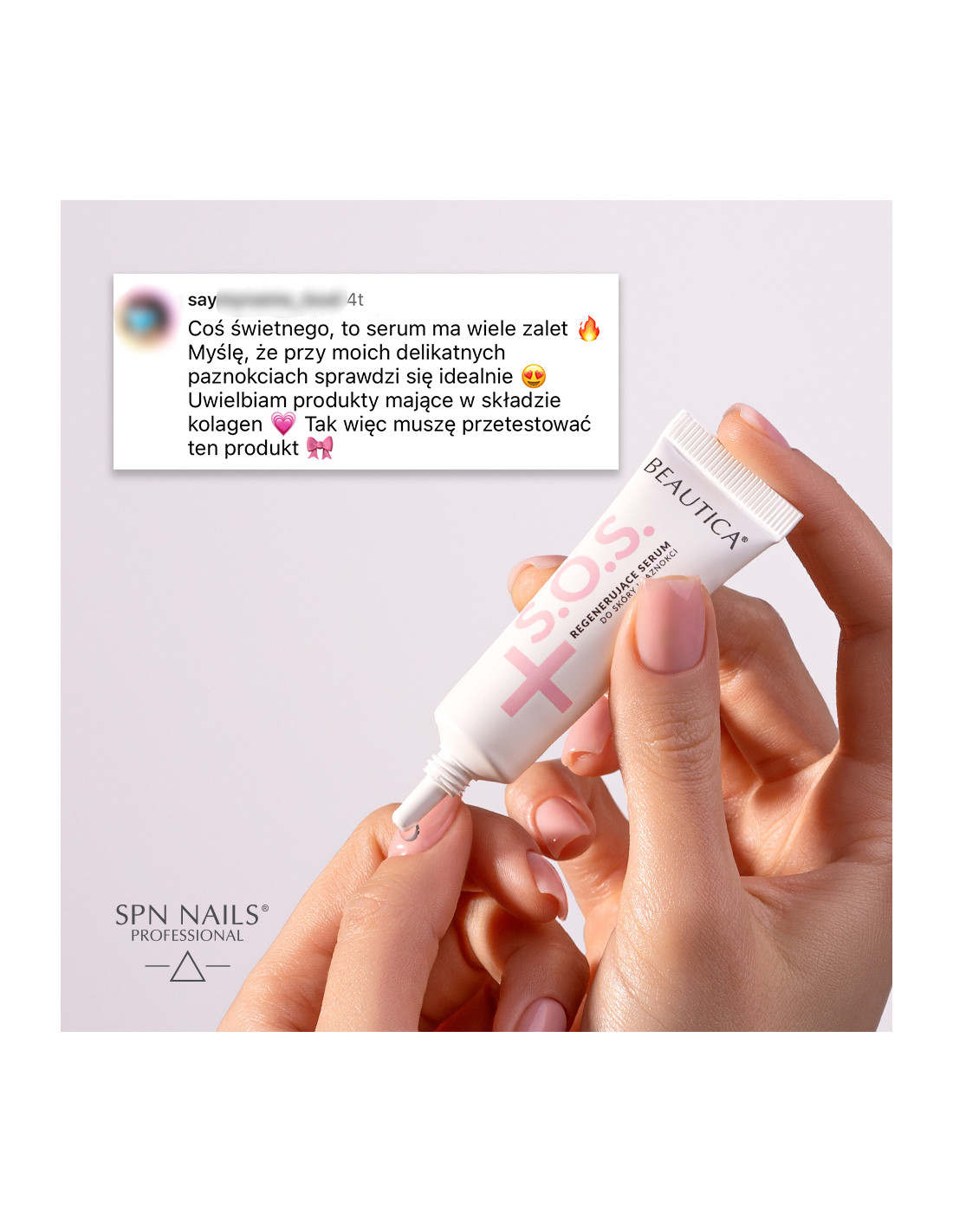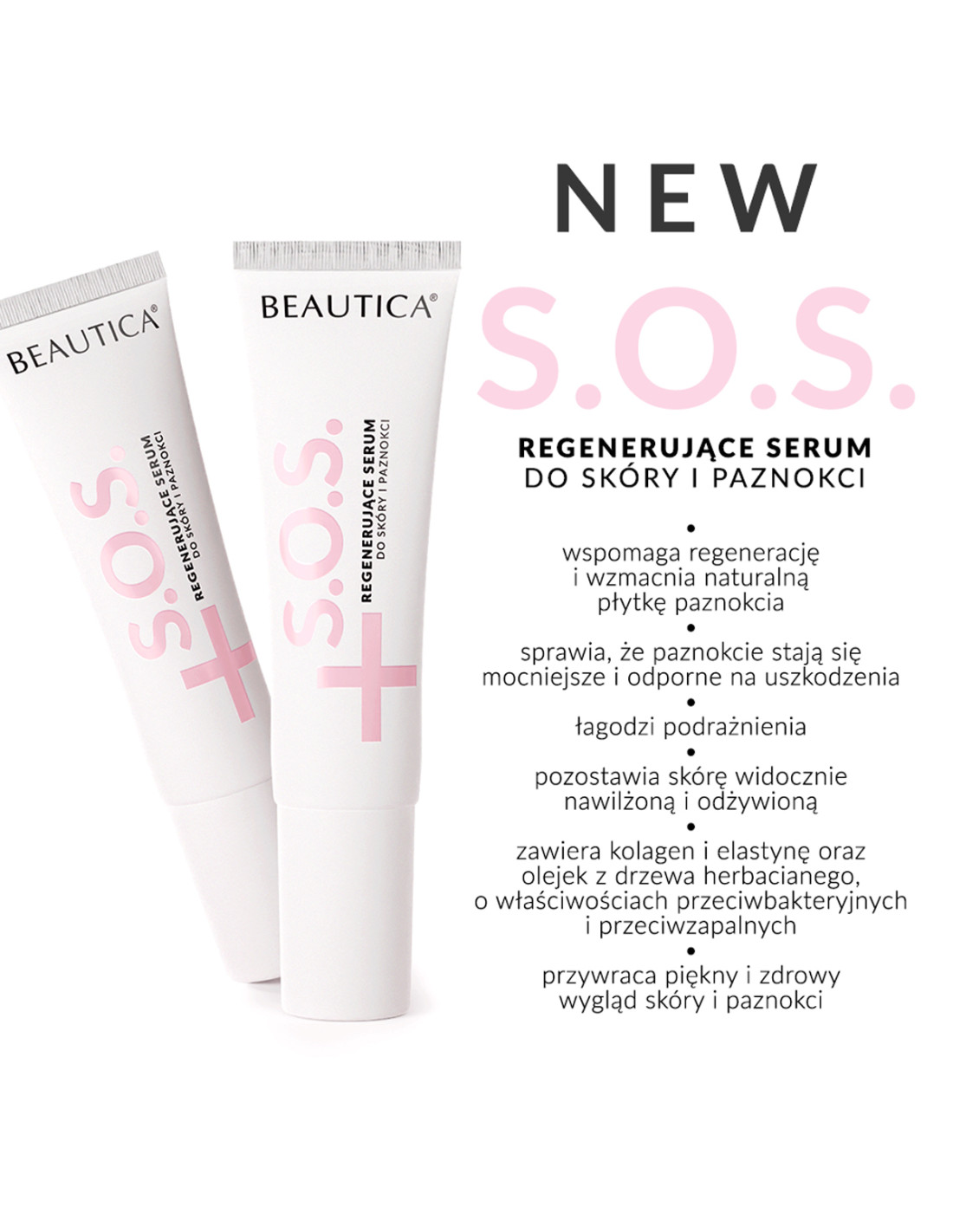 Regenerujące serum do skóry i paznokci z linii S.O.S. z zawartością kolagenu rybiego i naturalnego olejku z drzewa herbacianego wspomaga regenerację i wzmacnia naturalną płytkę paznokcia.