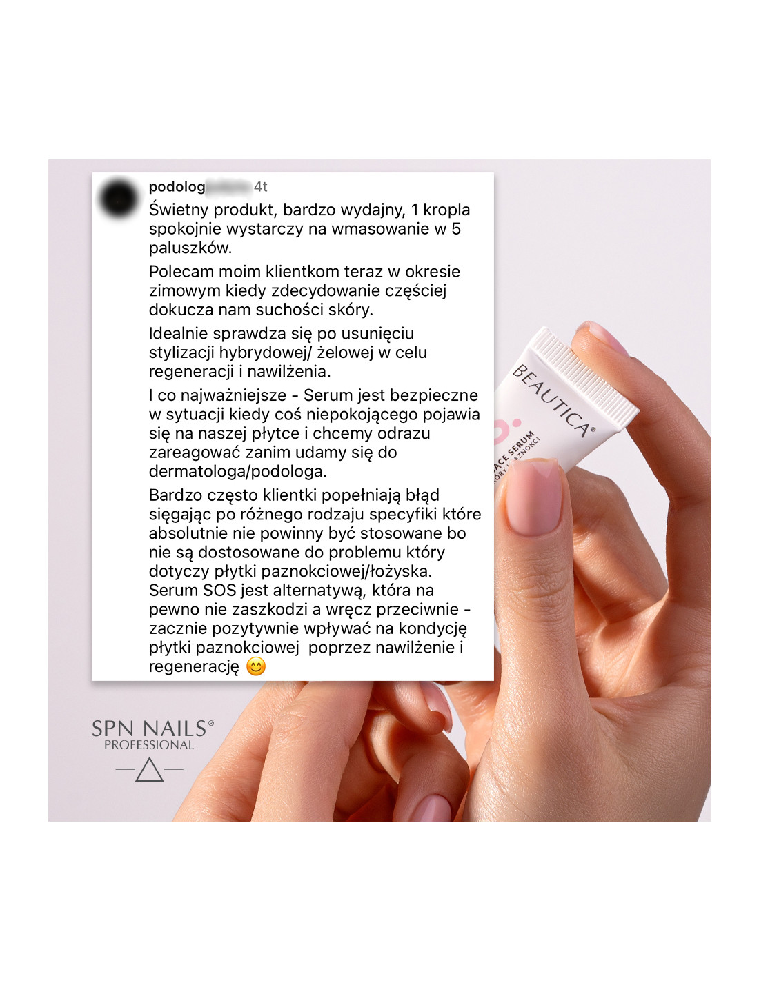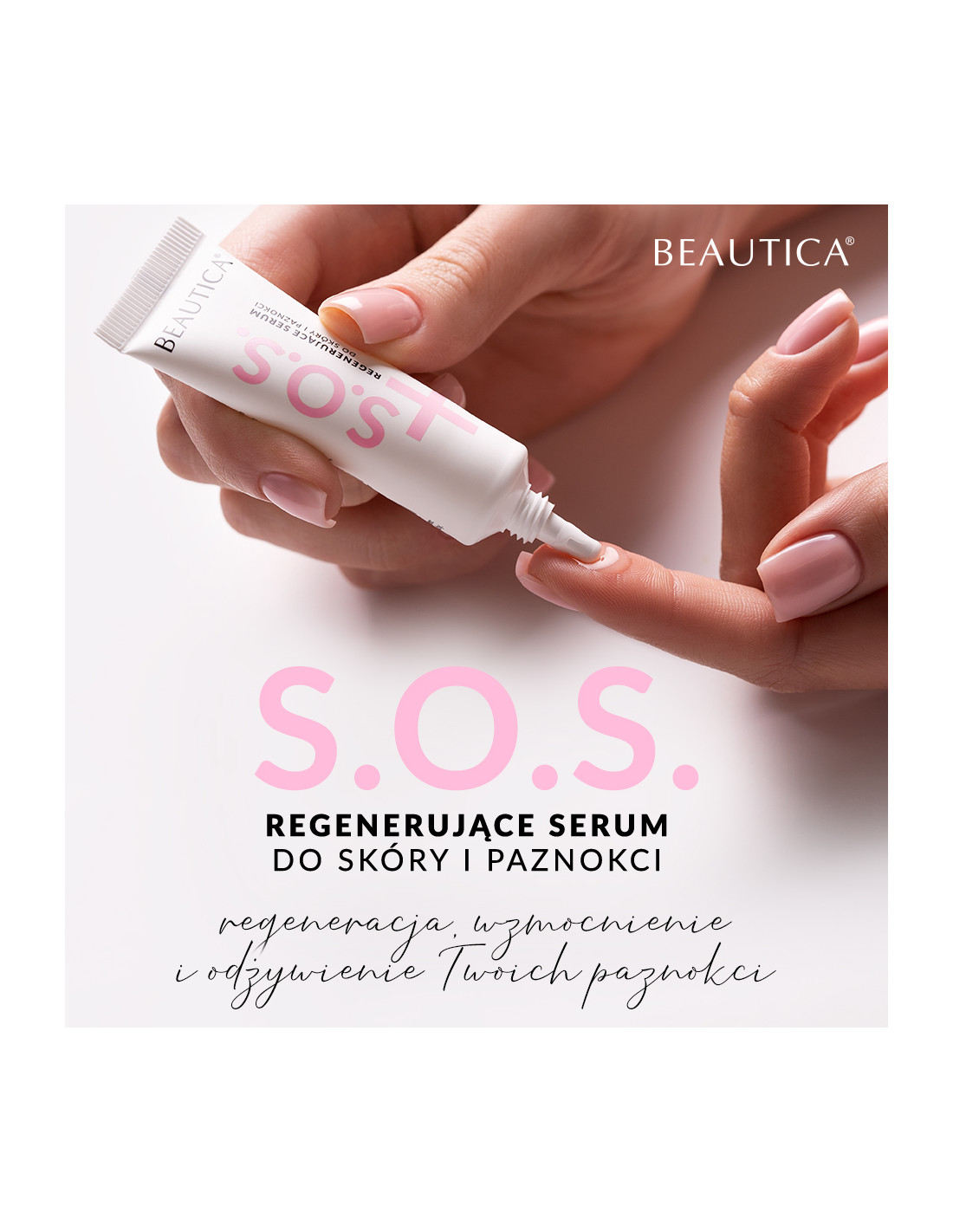 Regenerujące serum do skóry i paznokci S.O.S. przeznaczone jest do regeneracji płytki paznokciowej i łożyska paznokcia, a także pielęgnacji skórek i wałów okołopaznokciowych.