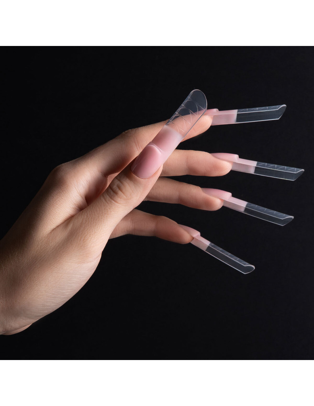 Dual Formy do frencha konstrukcyjnego Space French Dual Forms SPN Nails to praktyczne górne formy stworzone do szybkiego budowania paznokci żelem i akrylożelem. Specjalnie zaprojektowana przestrzeń na końcówce umożliwia łatwe wykonanie perfekcyjnego frencha konstrukcyjnego bez konieczności dodatkowego piłowania. Transparentny, elastyczny materiał pozwala na precyzyjną kontrolę produktu i dopasowanie formy do naturalnej płytki. Dzięki odpowiedniemu profilowi uzyskasz równą konstrukcję paznokcia i idealną linię uśmiechu. Opakowanie zawiera 150 sztuk form w 15 różnych rozmiarach, które ułatwiają dopasowanie do każdego typu płytki.